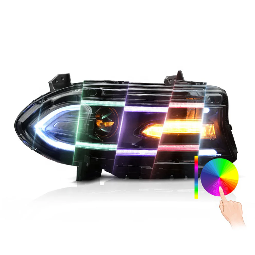 For 2015-2020 Dodge Charger RGB Led Headlights Assembly With Sequential Turn Signals Projector Dynamic Animation