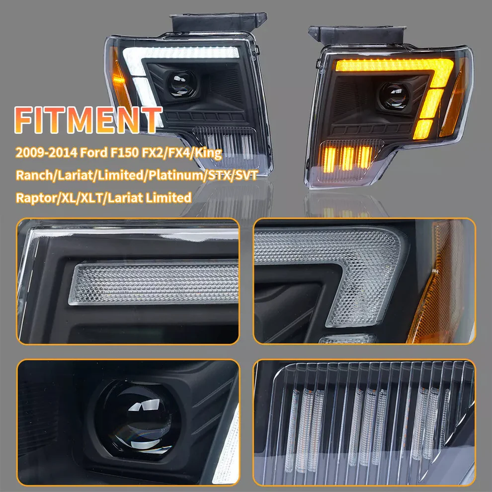 Led Headlight for 2009-2014 Ford F150 F-150 Front Lamp Assembly