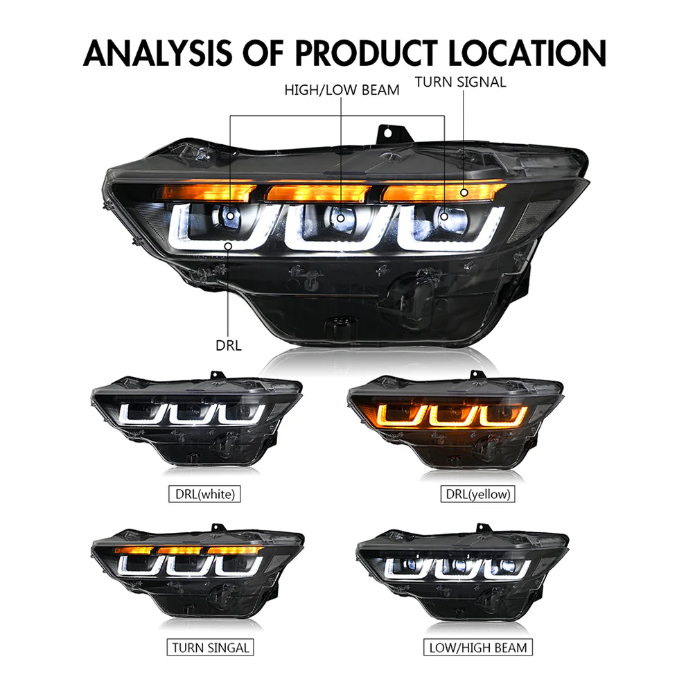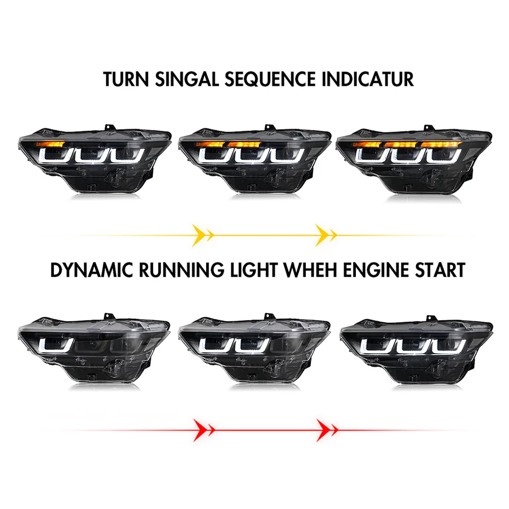 Led Headlight For 2024-2025 Ford Mustang Projector Front Lamp Assembly with Triple Beam Len