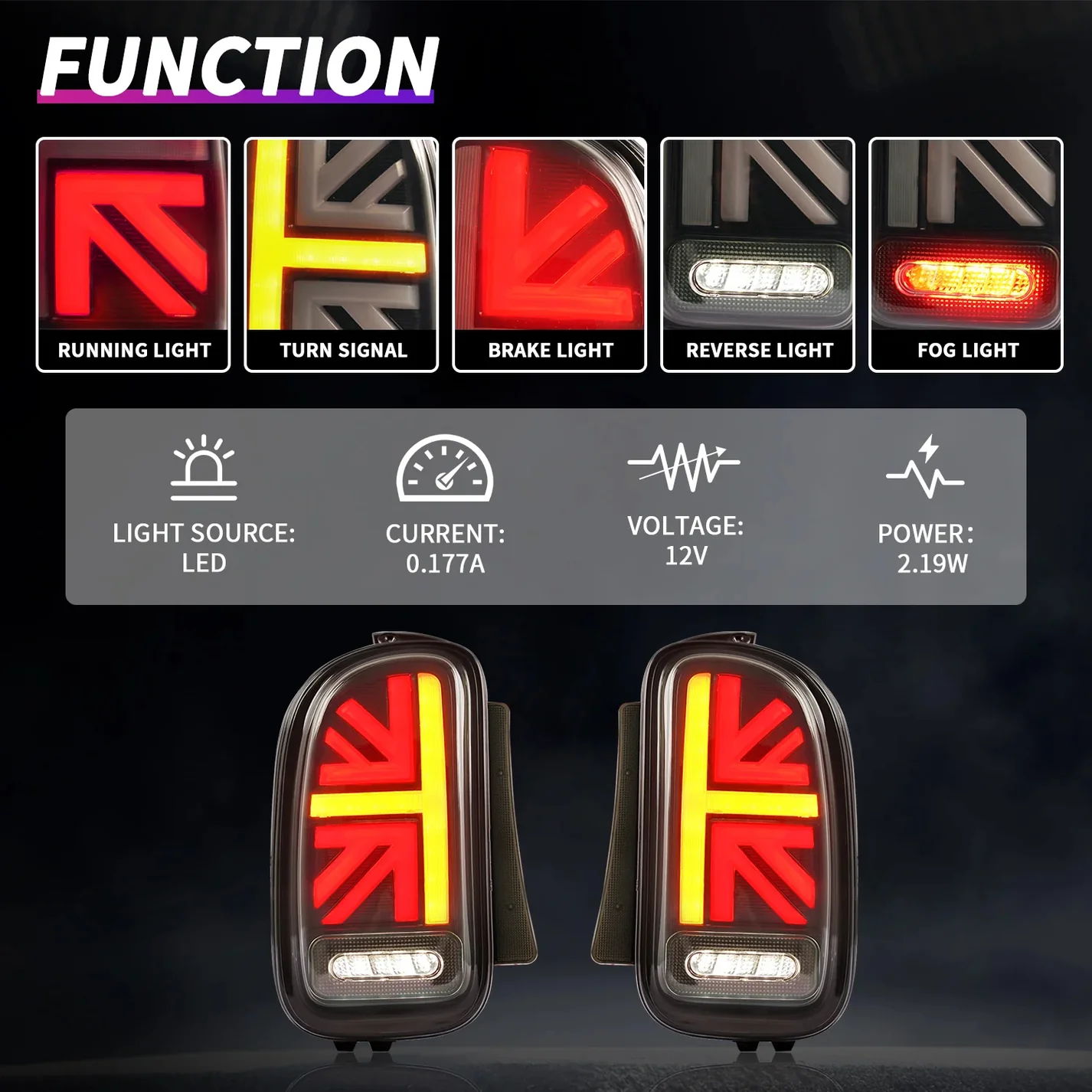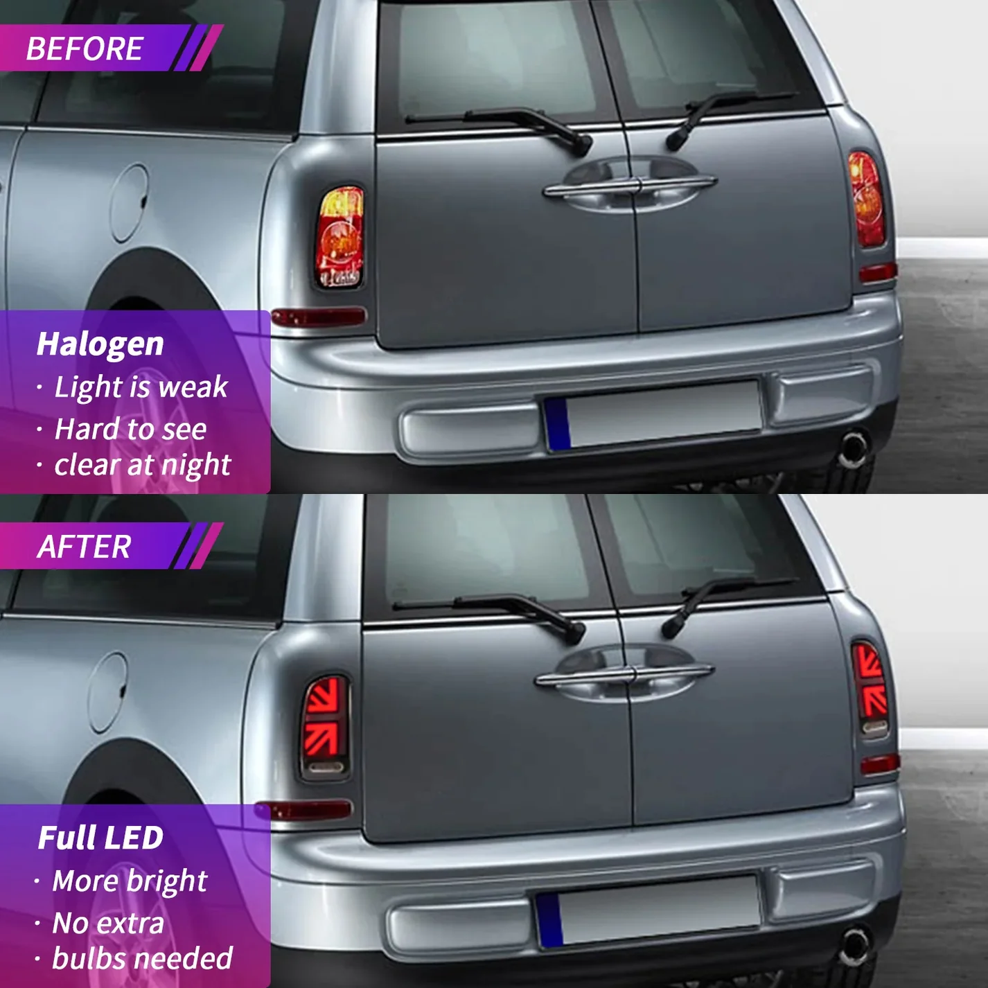 Dynamic Start-Up Animation: Equipped with a dynamic light system, our tail lamps showcase a captivating scanning animation when you start your vehicle, giving your Mini a refreshed look and a stylish flair.