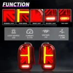 Sequential Turn Signals: Our tail lamps utilize dynamic sequential turning lights that are more eye-catching than traditional switchback signals. This feature helps communicate your movements to others on the road, while the LEDs ensure enhanced visibility at night.