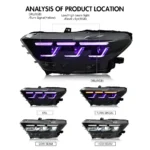 RGB Headlight For 2018-2023 Ford Mustang S650 Projector Front Lamp Assembly