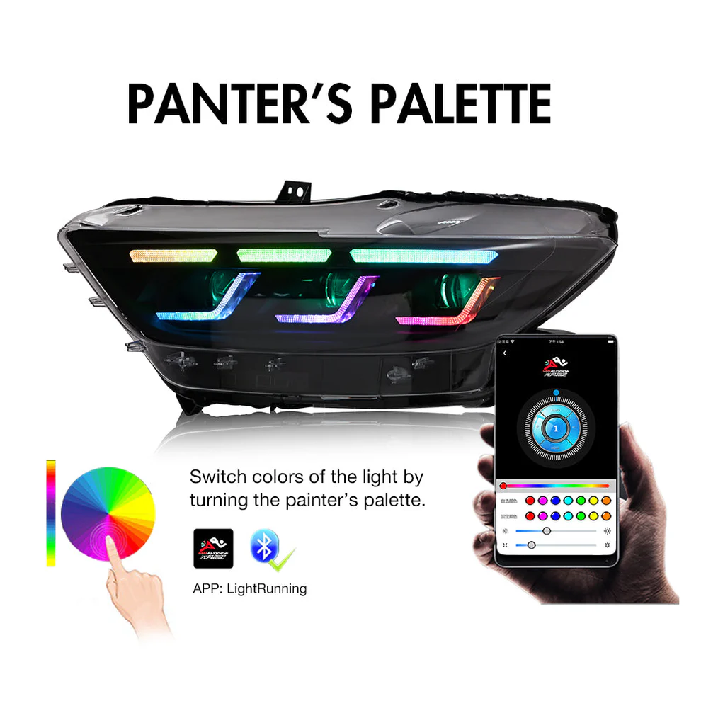 RGB Headlight For 2015-2017 Ford Mustang S550 Projector Front Lamp Assembly with Triple Beam Len