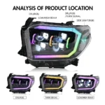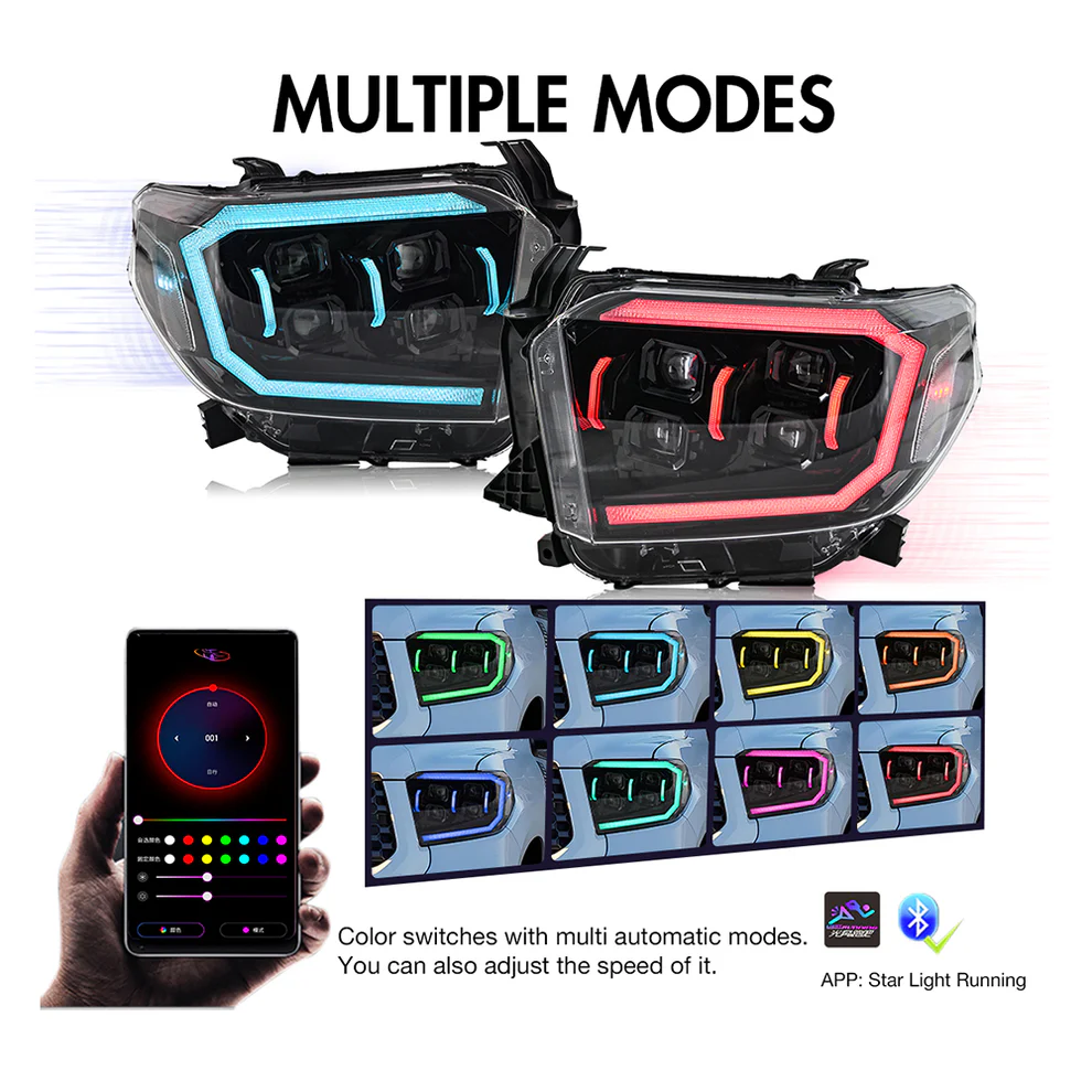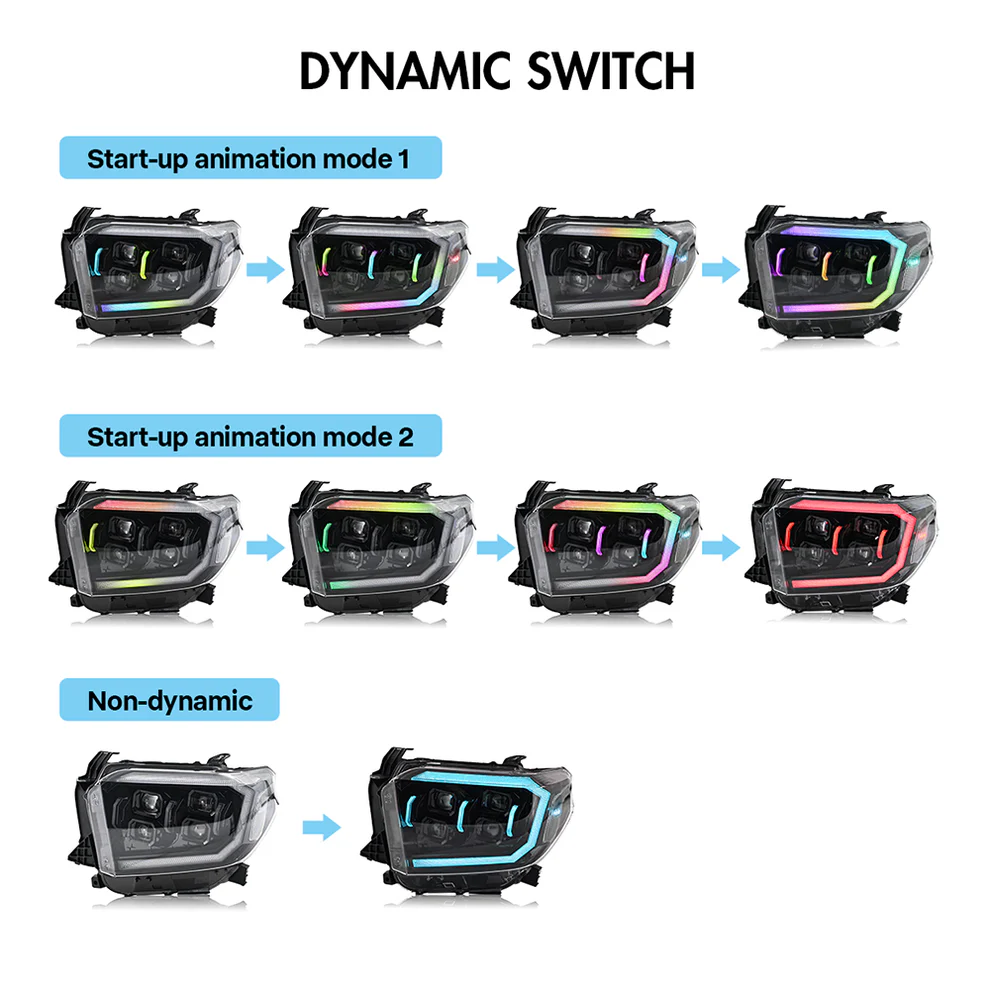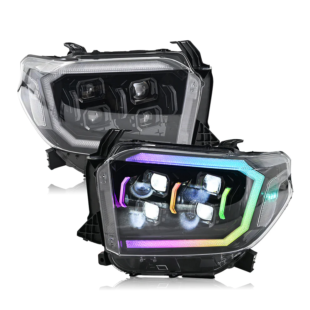 RGB Headlights For 2014-2021 Toyota Tundra Sequential Turn Signal, DRL w/Dynamic Animation
